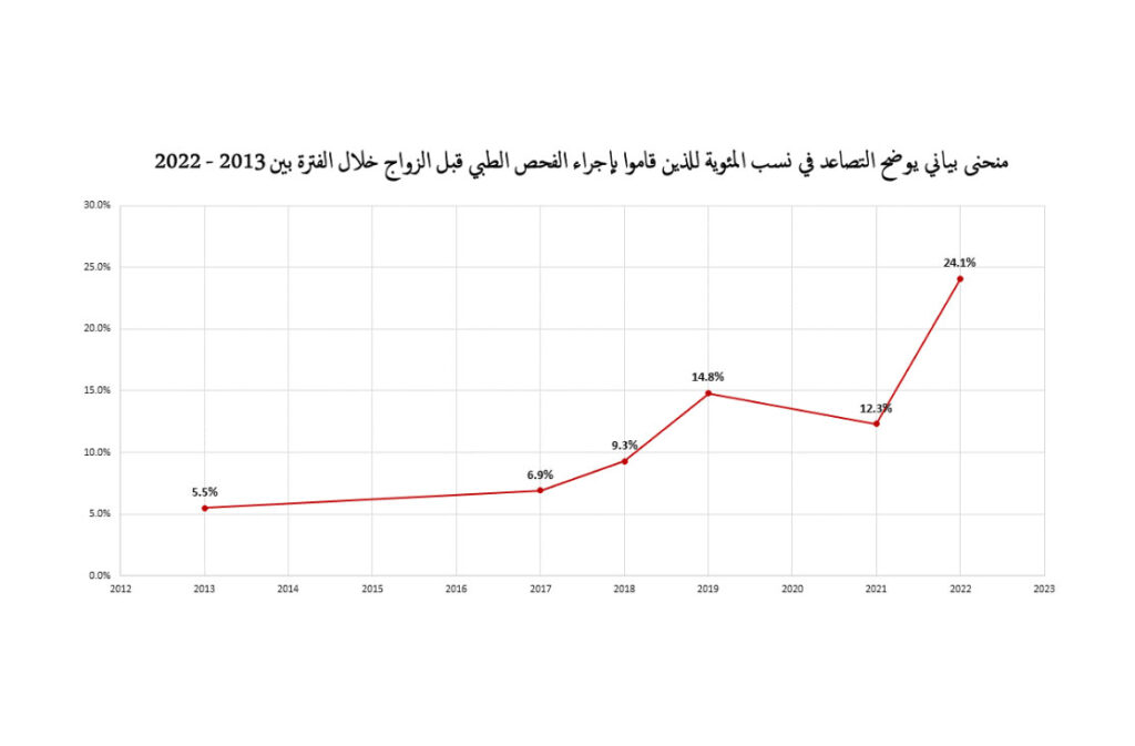 ويكمل: في إحدى المرات تقدم خطيبان إلى عيادة الفحص قبل الزواج، برفقتهم أب الفتاة الذي تبين بأنه هو من أصر على إجراء الفحص الطبي قبل الزواج لابنته وخطيبها ومتابعة قيامهما بذلك، وقد تكرر هذا السيناريو عدة مرات من نفس الأب، وهذا يعكس الوعي الراقي لبعض الآباء وإيمانهم بأن الفحص قبل الزواج هو اللبنة الأولى والأهم لأسرة سليمة معافاة منتجة ومساهمة في بناء المجتمع والوطن.
