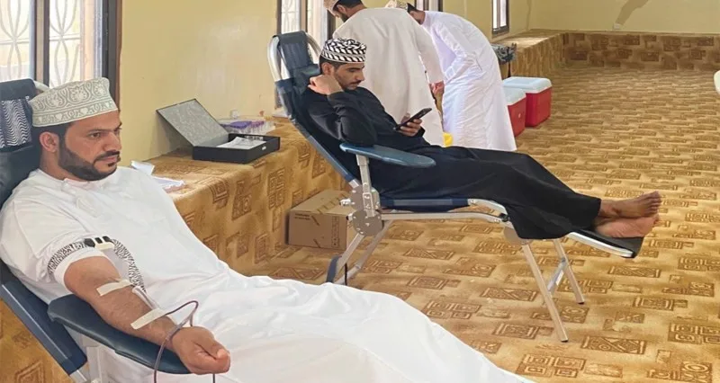 The blood bank at Al Rustaq Hospital, in collaboration with the Fasah team of Al Rustaq Club, organized a blood donation campaign at the Fasah General Council in Wadi Al Sahtan.